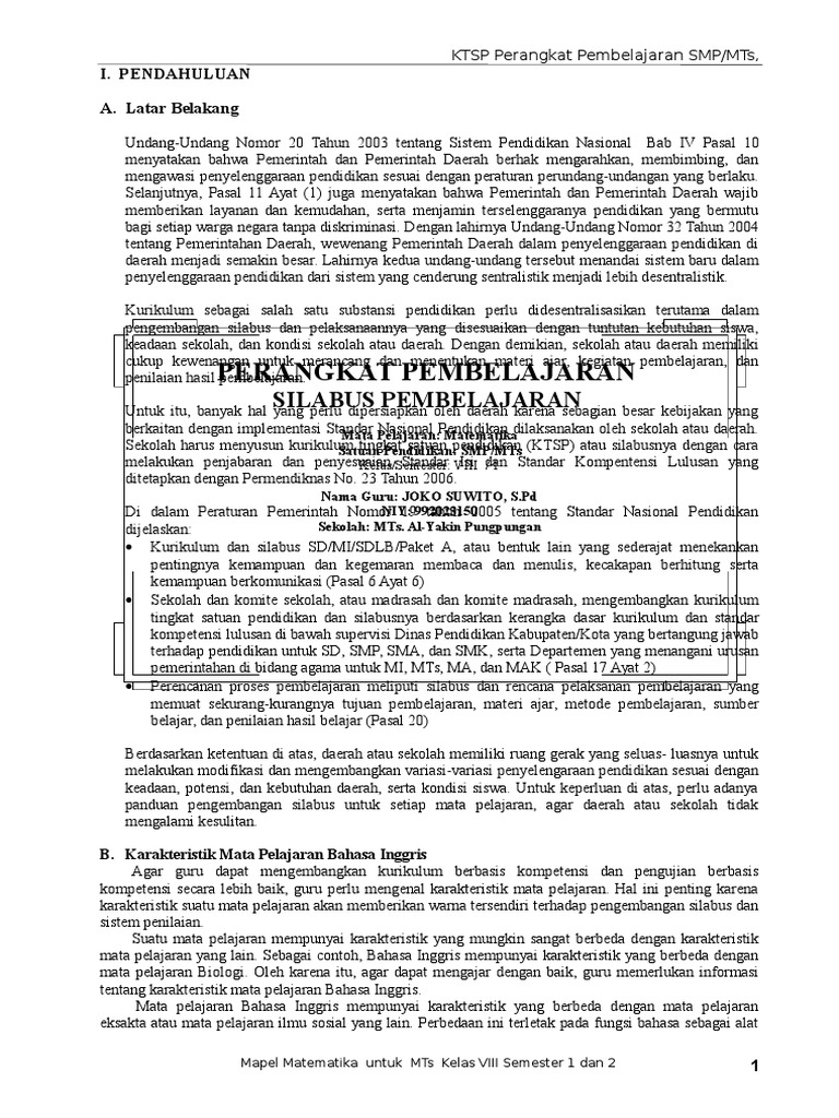 Silabus Matematika SMP Berkarakter Kelas VIII Semester 1 from imgv2-2-f.scribdassets.com Maybe you would like to learn more about one of these? Check spelling or type a new query. We did not find results for: Silabus bahasa indonesia smp semester ganjil.